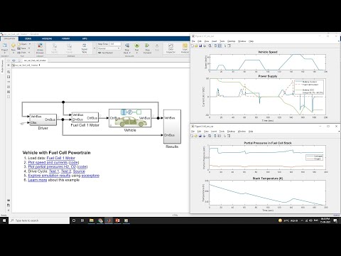 Source: Steve Miller (2021). Fuel Cell Vehicle Model in Simscape (https://github.com/mathworks/Fuel-Cell-Vehicle-Model-Simscape/releases/tag/21.1.1.2), GitHub. This example shows a Fuel Cell Powertrain modeled in Simscape. A single fuel cell stack in parallel with a battery powers a single motor that propels the vehicle. The fuel cell is modeled using a custom domain to track the different species of gas that are used in the fuel cell. The vehicle can be tested on custom drive cycles or using the Drive Cycle Source from Powertrain Blockset. The fuel cell and battery are connected on a DC electrical network to the motor. The control system determines how much power to draw from the battery and fuel cell. During braking events, power is fed back into the battery to recharge it. A thermal system modeled using a fluid network controls the temperature of the battery, DC-DC converters, and the motor. The flow of oxygen, hydrogen, nitrogen, and water is captured in a custom Simscape domain. Equations for reactions and heat generated are implemented in Simscape language. A thermal management system keeps the fuel cell at the optimal operating temperature. Plot shows how the current from the battery and fuel cell vary as the car is driven along a standard drive cycle. Note that the battery is recharged (current changes sign) while the fuel cell is only discharged. Click here to get the file: https://in.mathworks.com/matlabcentral/fileexchange/33309-fuel-cell-vehicle-fcv-power-train Kindly Subscribe My YouTube Channel... Please like, share and comments on My Videos 🙏 Please click the below links to Subscribe/Join & View my Videos https: //www.youtube.com/c/DrMSivakumar Telegram : t.me/Dr_MSivakumar website : drmsivakumar78.blogspot.com